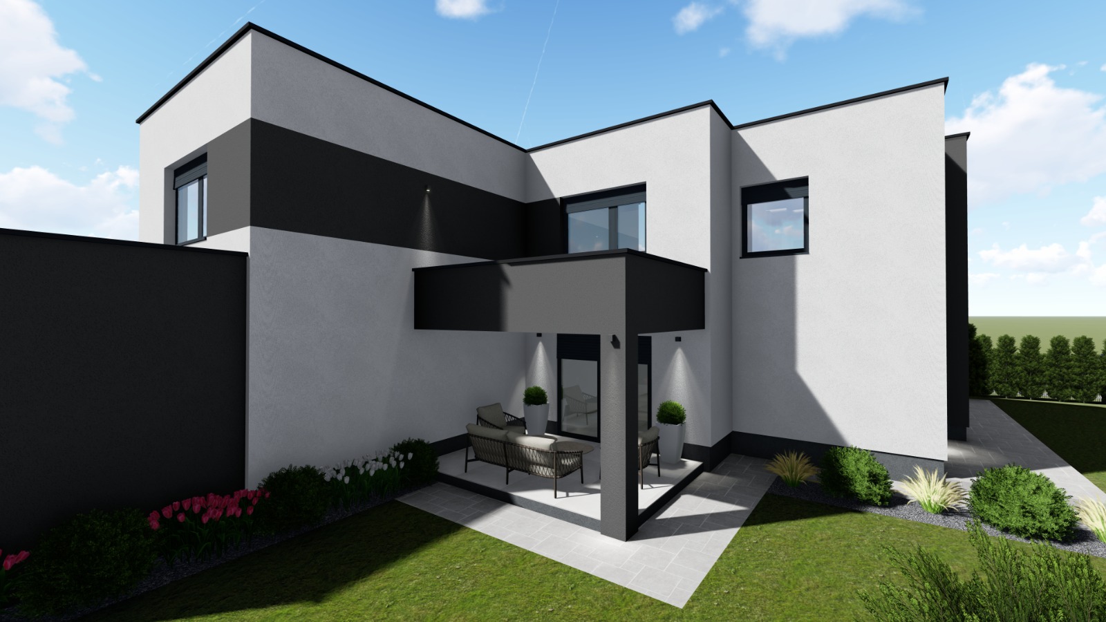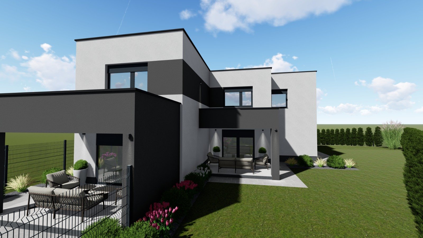 Završna faza: Objekt se gradi do stupnja srednji roh-bau – uključuje konstrukciju, fasadu, stolariju, krov, hidroizolaciju i pregrade