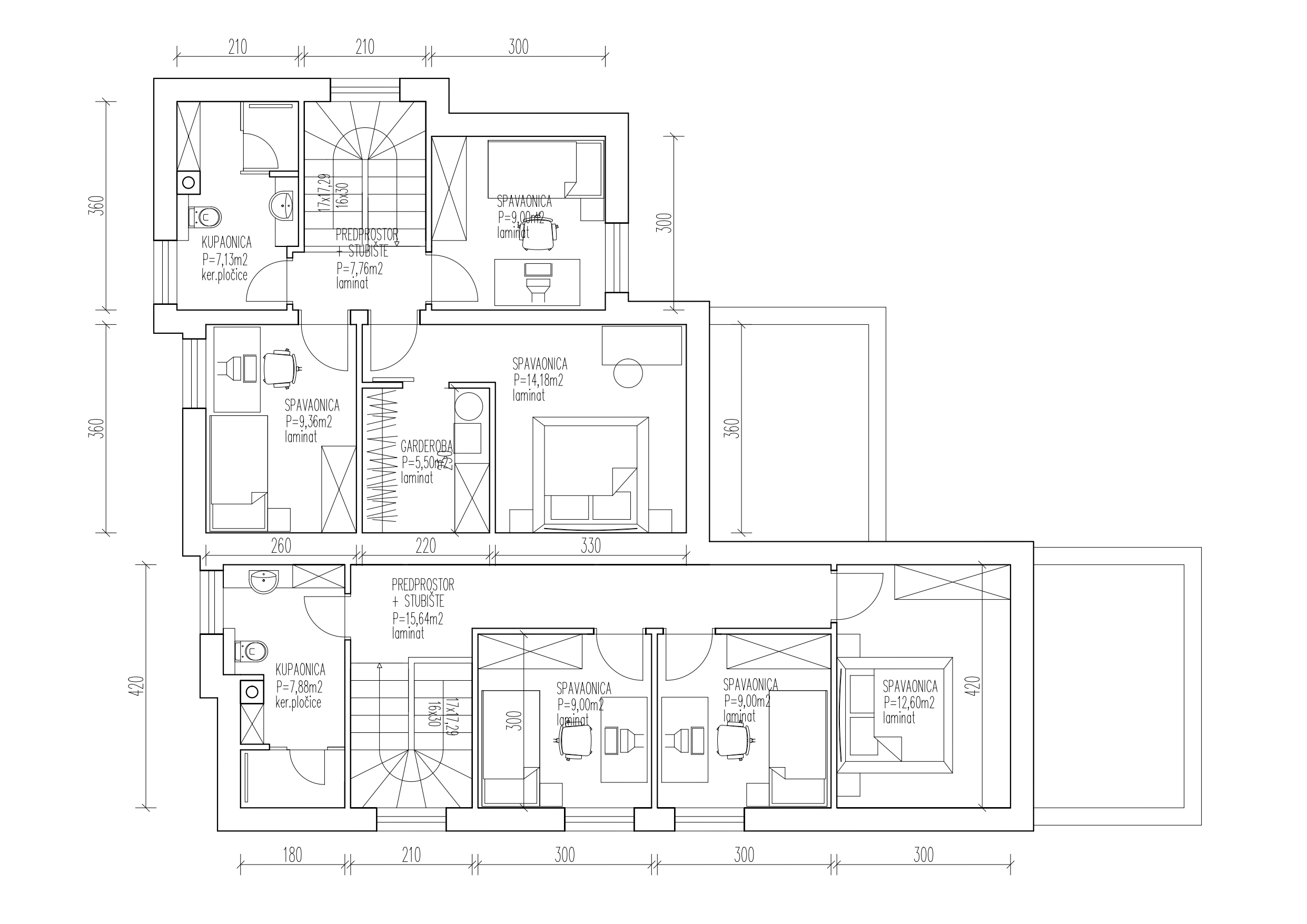 Krov: Ravan krov, nagiba 1–3,15 %, s hidroizolacijskom folijom i parnom branom